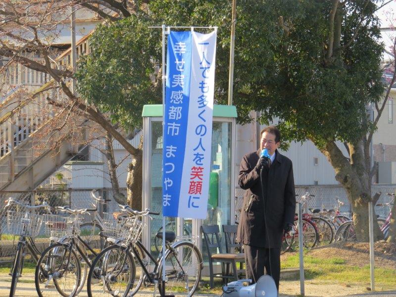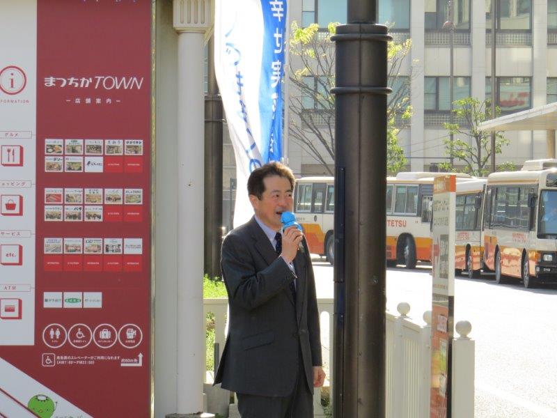 3月の北条JR粟井駅での街頭演説後、選挙期間中は駅めぐり街頭演説をお休みしていましたが、17日から、松山市駅前での街頭演説から再開致しました。