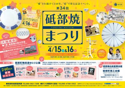 3月の「窯出し市」に続き、4月15日、16日に約100軒ある窯元から約10万点の砥部焼をそろえた、砥部焼大即売会をはじめ、砥部焼などが当たる「大抽選会」やご当地キャラクターと一緒に楽しめるゲーム大会など、今年で34回目を迎える「砥部焼まつり」が開催されます。
